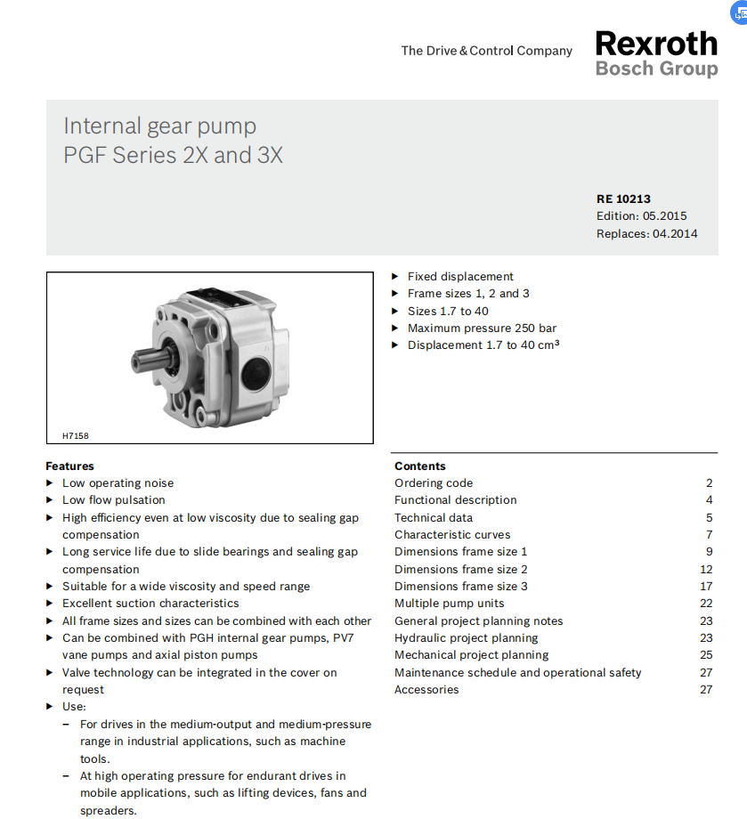 力士樂(lè)外嚙合齒輪泵PGF系列型號(hào)樣本,安裝及使用說(shuō)明書(shū)