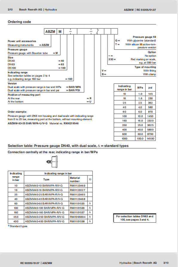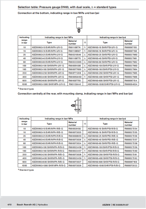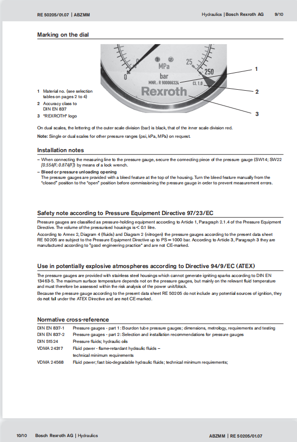 力士樂(lè)壓力表ABZMM系列型號(hào)樣本,安裝及使用說(shuō)明書(shū)