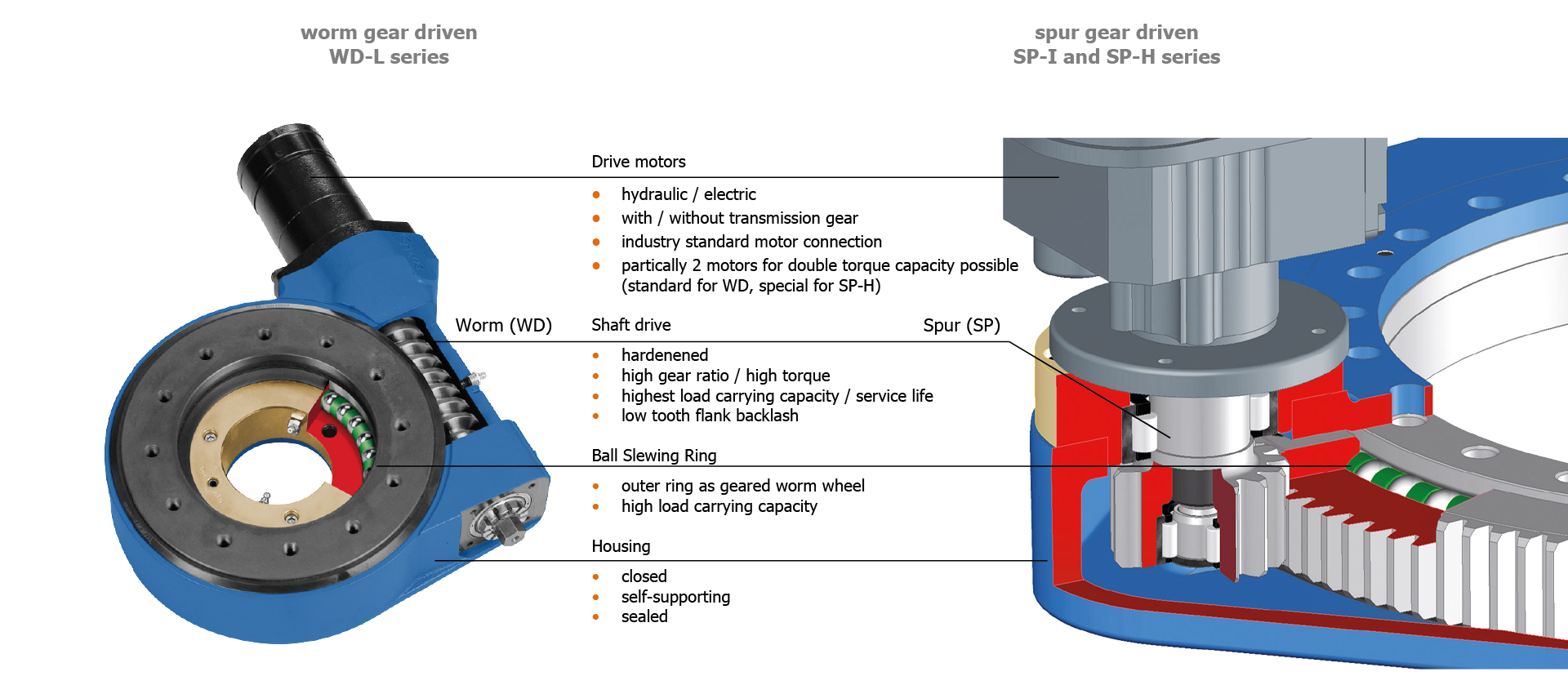對于回轉(zhuǎn)驅(qū)動(dòng)器,可根據(jù)要求提供一些附件,例如制動(dòng)器、行星齒輪、電機(jī)和旋轉(zhuǎn)編碼器。