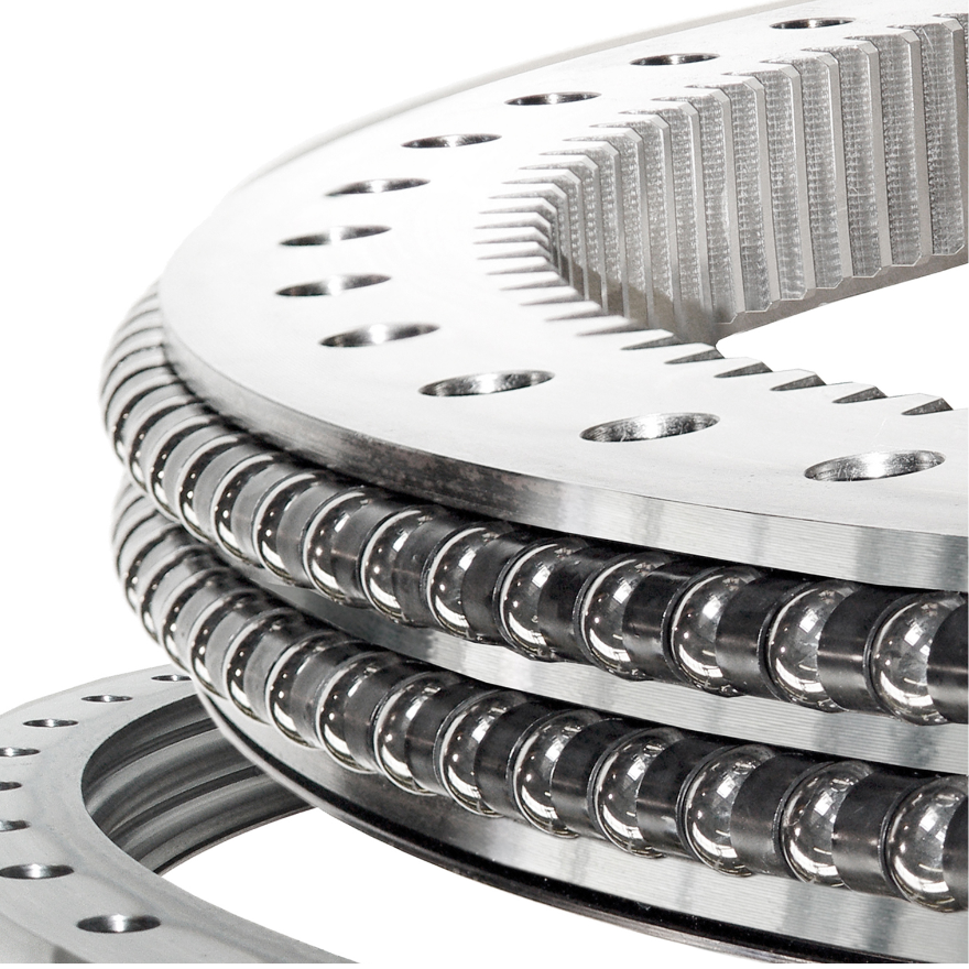 滾珠回轉(zhuǎn)支承單列或雙排、四點(diǎn)滾道幾何形狀,可在惡劣的使用條件下實(shí)現(xiàn)堅(jiān)固的結(jié)構(gòu)。