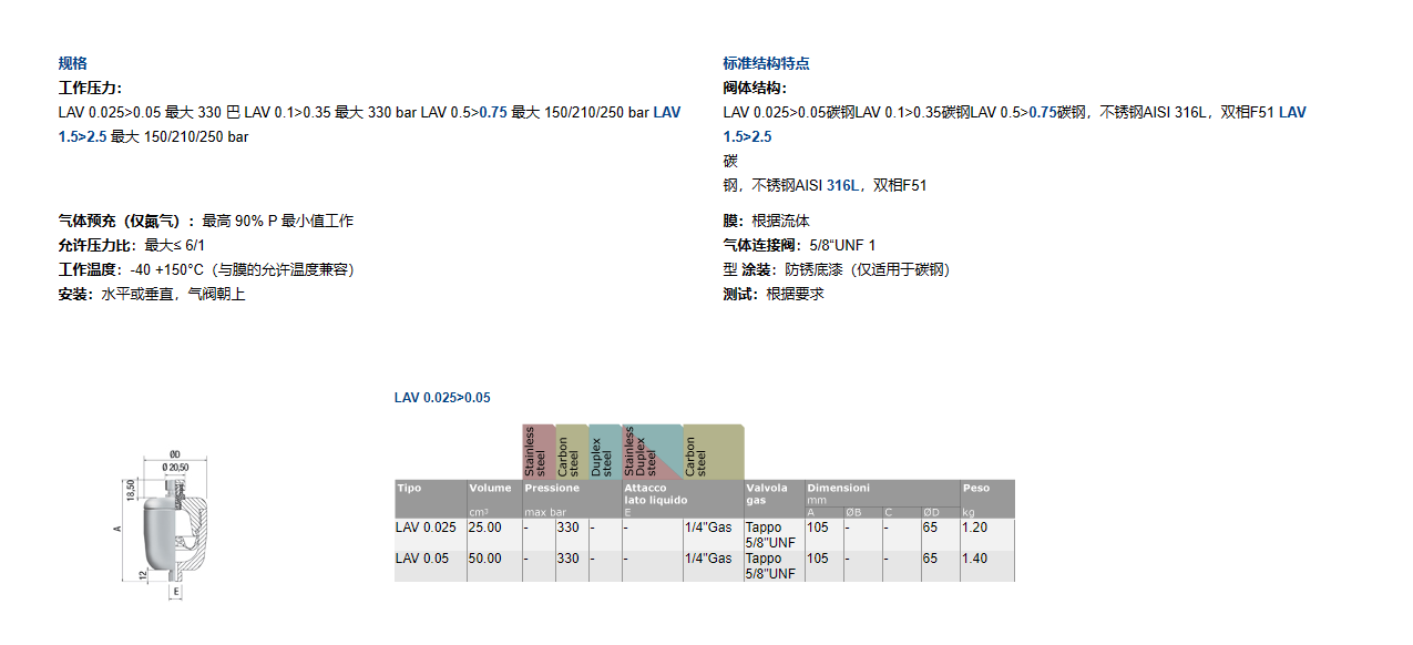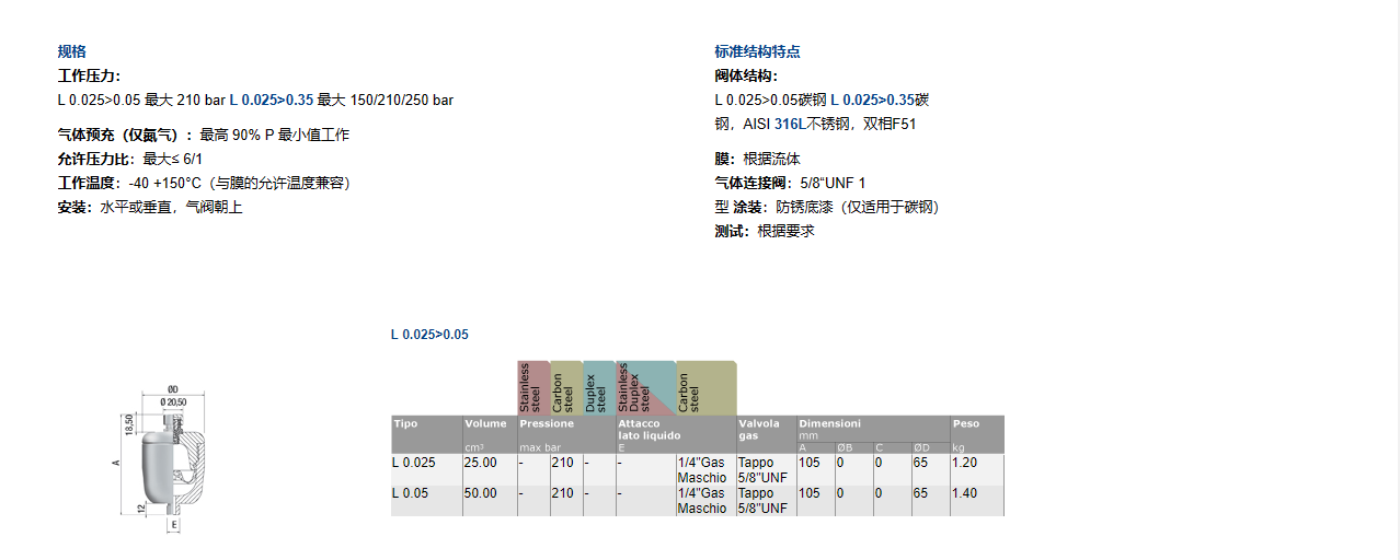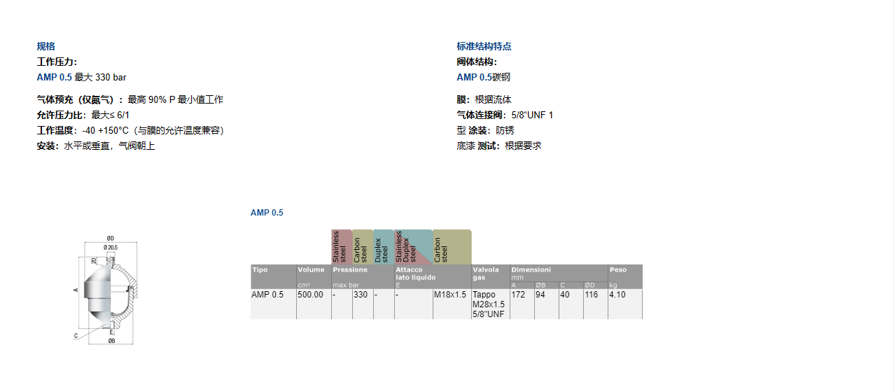 SAIP膜蓄能器的質(zhì)量 該領(lǐng)域最有經(jīng)驗的人都知道,膜蓄能器是一種首先安裝在液壓系統(tǒng)上的附件。油從下部進入以減少可用氣體的體積,而后者被壓縮并在出現(xiàn)壓降時發(fā)揮作用。 正是由于它執(zhí)行的重要功能,它安裝在與執(zhí)行器相鄰的位置,以控制要控制的不平衡。因此,安全塊安裝在蓄能器和蓄能器的安裝位置之間,蓄能器由安全閥、壓力表和排除閥組成。這有助于系統(tǒng)的維護,對操作的干擾范圍產(chǎn)生輕微影響,既可以控制氣體的充氣壓力,也可以進行預(yù)防性更換以及修復(fù)可能的故障。 不同類型的膜蓄能器 通常,膜蓄能器因其形狀而與袋式蓄能器混淆。事實上,兩者都配備了一種尺寸減小的圓柱體,此外還具有分離壓縮氣體和油的彈性體部件。盡管有這些相似之處,但它們呈現(xiàn)出實質(zhì)性的結(jié)構(gòu)差異,涉及膜蓄能器的缺乏焊縫,膜蓄能器恰好是一個整體元件,與配備螺紋和焊縫的袋式蓄能器不同。 最常用于制造此類元件的建筑材料是碳鋼,盡管有不銹鋼、聚丙烯、PVC 和其他類型的材料流通的系統(tǒng)。 在Saip在線商店中,您可以找到各種各樣的膜蓄能器,例如經(jīng)典的AMP 0.5 Lt碳鋼P.max 330 bar。它由碳鋼、不銹鋼和雙相制成,是同類產(chǎn)品中最暢銷的產(chǎn)品之一。與 L 0.025 / 0.35 Lt 碳鋼、不銹鋼或雙相鋼一樣,P.max 150/250 bar,形狀更圓潤,末端有兩個大閥門。提出的另一篇優(yōu)秀文章是 LAV 0.025 / 2.5 Lt 由碳鋼、不銹鋼和雙相鋼制成,帶有 P.max 150 /330 bar,帶有細長的線條和側(cè)面加強件。 事實上,該公司可以滿足客戶的所有需求,這些客戶必須處理具有特定特性的特殊工藝。只需打電話并解釋您的需求,即可獲得幫助,并從工作人員那里獲得大量服務(wù),細心周到,隨時準(zhǔn)備處理任何問題。 膜蓄能器的所有優(yōu)點 這種類型的蓄能器可以配備不同類型的彈性體,具體取決于使用條件。例如,如果將其安裝在必須在非常低的溫度下工作的機器上,這些可能會使元件變形和硬化,因此我建議使用基于環(huán)氧氯丙烷(ECO)的膜蓄能器。相反,如果工作條件是標(biāo)準(zhǔn)的,最好采用丁腈橡膠(NBR)膜,實用,有彈性,耐用。 在任何情況下,都可以購買配備壓力表和不同連接的特殊預(yù)充電套件。這是一個方便的情況,可以用來執(zhí)行定期檢查以檢查故障和損壞。