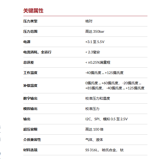 一種高質(zhì)量的壓力傳感解決方案,以極低的成本提供卓越的精度。其高性能和緊湊的結(jié)構(gòu)使其成為各種應(yīng)用的理想選擇。輸出經(jīng)過完全校準(zhǔn)和溫度補(bǔ)償,無需進(jìn)一步處理即可直接安裝到最終用戶系統(tǒng)。