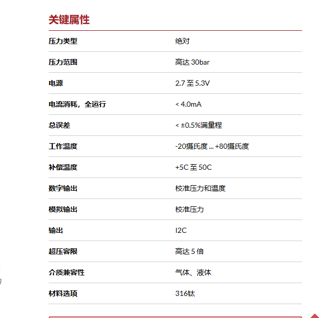 該傳感器提供高精度 32 位壓力和溫度輸出。