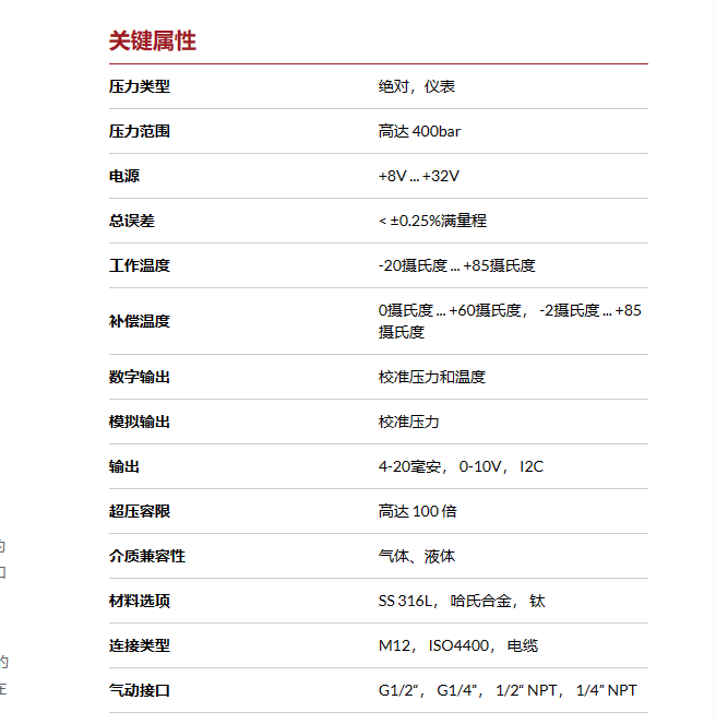 集成在介質(zhì)隔離壓力系統(tǒng)中的電容式壓力傳感器芯片的ESCP-MIT1提供最先進(jìn)的精度和分辨率,出色的長期穩(wěn)定性以及非常好的可重復(fù)性和遲滯。包括熱偏移在內(nèi)的總誤差低于滿量程±0.25%。
