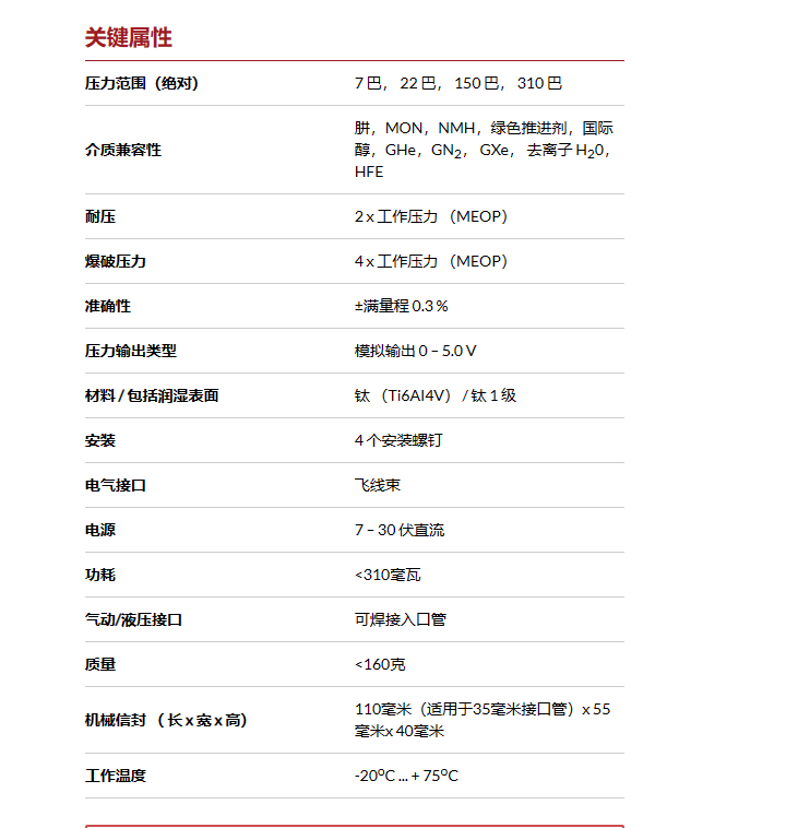 ESCP-SAPT是一款專為太空應(yīng)用而設(shè)計(jì)的全焊接鈦傳感器。傳感器可以集成在推進(jìn)系統(tǒng)中,以測量推進(jìn)劑流體的靜壓。ESCP-SAPT壓力變送器由MEMS電容式壓力傳感器芯片組成。其設(shè)計(jì)非常適合空間應(yīng)用的輻射、溫度和極端環(huán)境。