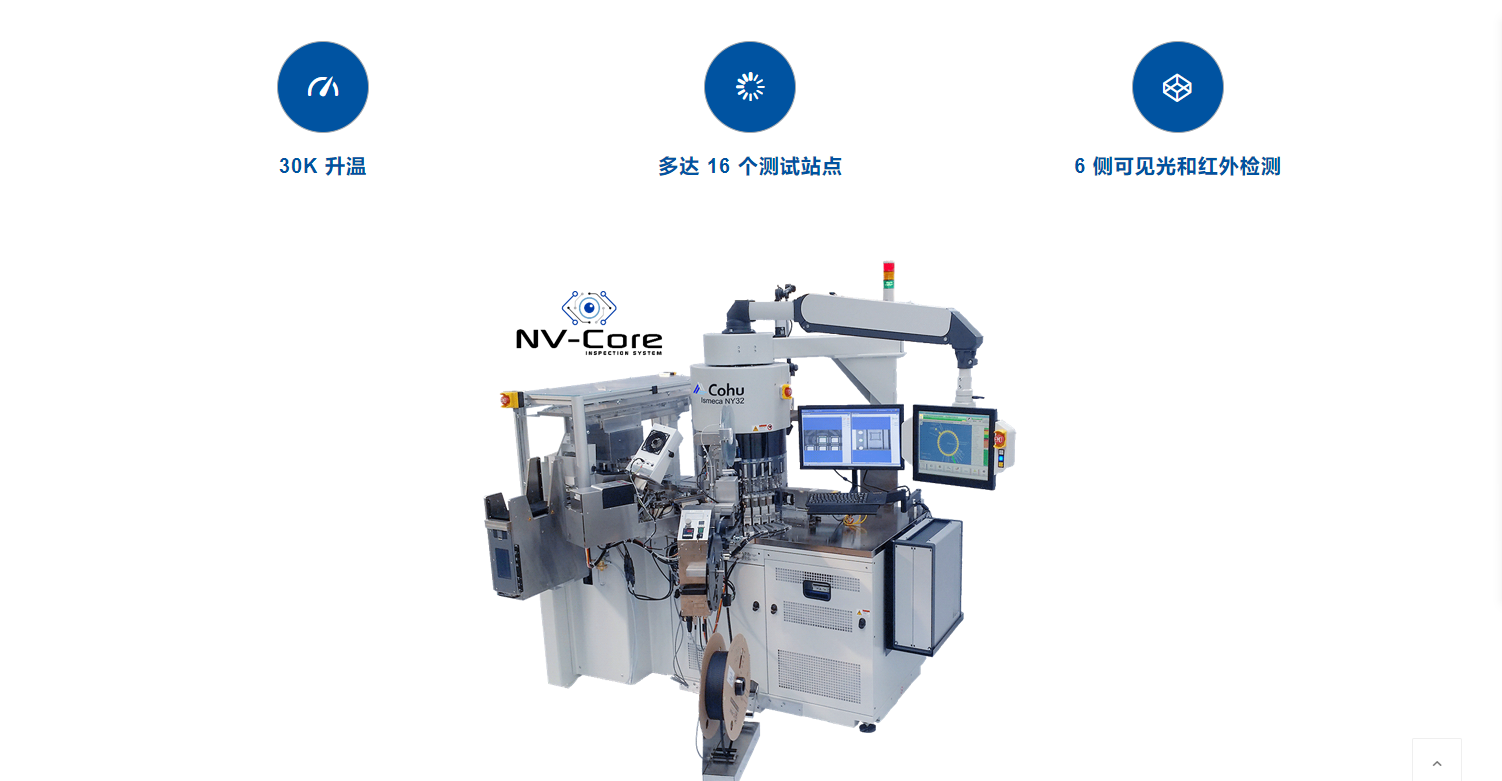 高效、靈活地裝載/卸載 InCarrier,包括視覺檢測(cè)和最終包裝。使用Cohu的高精度刀塔進(jìn)行受控和靈敏的設(shè)備處理,并通過NV-Core檢測(cè)系統(tǒng)增強(qiáng)視覺功能。NV-Core最新的先進(jìn)檢測(cè)技術(shù)包括創(chuàng)新的解決方案,如用于三維形貌檢測(cè)的3D Flex,用于側(cè)壁微裂紋檢測(cè)和用于次表面缺陷檢測(cè)的紅外檢測(cè)。